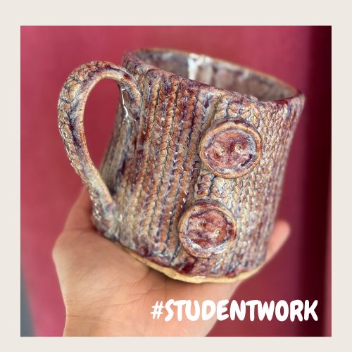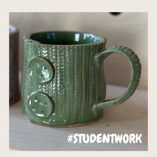 This project will take two classes to complete. Please make sure you can commit to both classes before purchasing in the drop down menu before adding to cart. During the first class we will hand build the sweater mug from slabs of clay with step by step instructions. Once the mugs are fired to bisque state, participants will return for the second class. They will learn a little bit about glazes and choose their color and glaze their mugs.